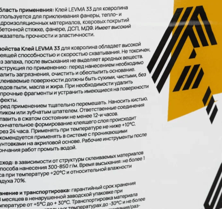 Клей Levma - Levma 33 7 кг (Для ковролина) 0005873 Цена 2490 ₽/шт. Levma Россия купить купить в один клик