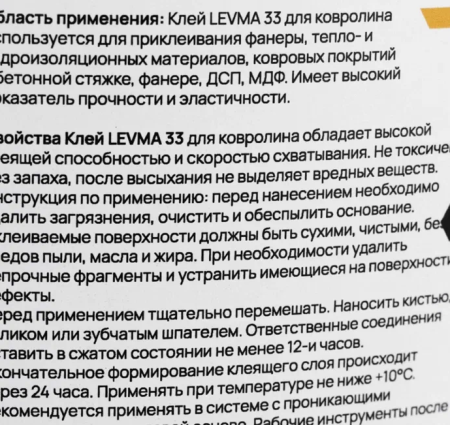 Клей Levma - Levma 33 4 кг (Для ковролина) 0005874 Цена 1420 ₽/шт. Levma Россия купить купить в один клик