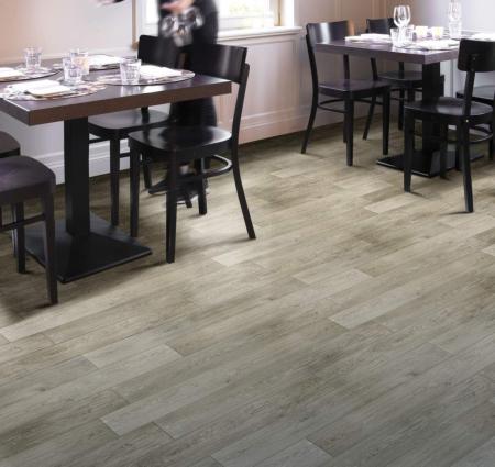 Полукоммерческий линолеум — «средняя» версия между коммерческим покрытием и бытовым линолеумом. Как правило, его используют в помещениях с умеренной нагрузкой: небольшие торговые площади, кафе или внутри офисов. Наиболее популярная толщина у покрытия – от 2 до 3.5 миллиметров.